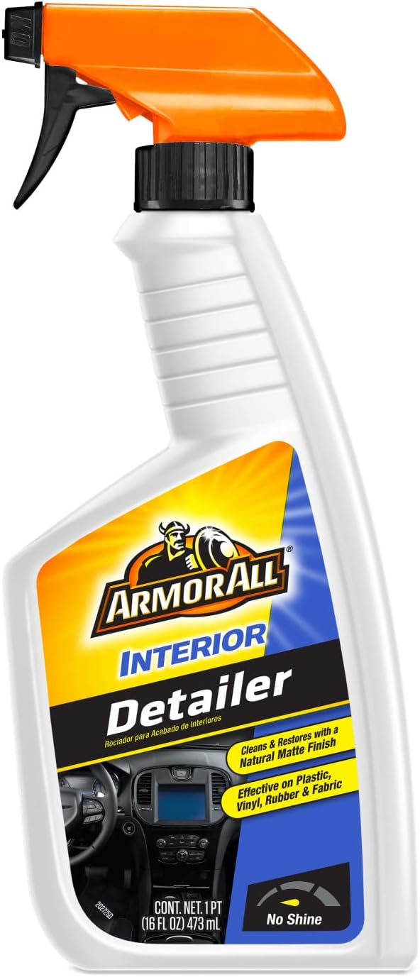 Armor All Interior Detailer is scientifically engineered to clean and reveal the natural appearance of your vehicle’s surfaces. Armor All Interior Detailer is designed for your car's special needs, cleaning and revealing your car’s rich, natural beauty without harming delicate automotive surfaces. This multi-surface car detailer leaves a natural matte finish to achieve that “just‐detailed” look. Perfect for consoles, steering wheels, fabric, vinyl, dashboards, running boards and more!