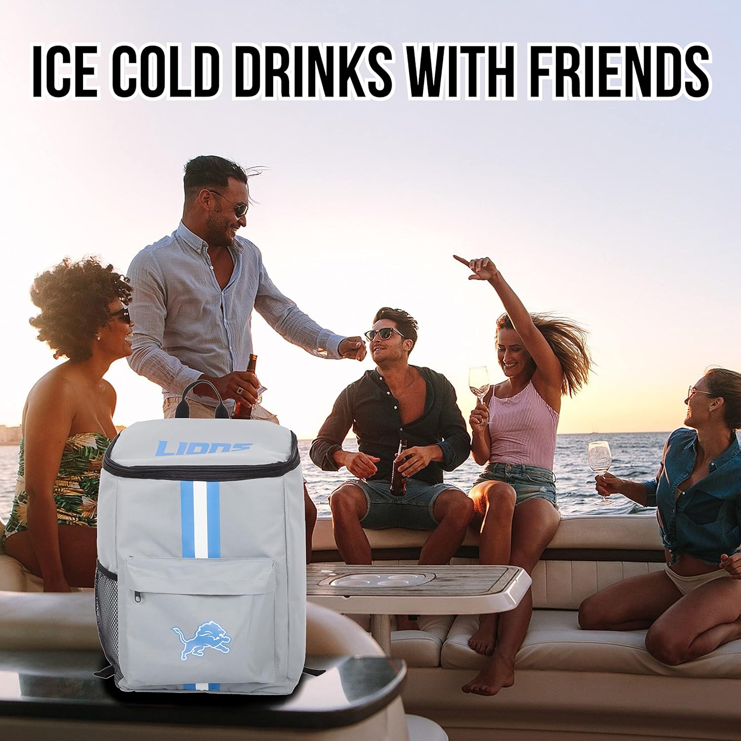 Cooler Backpack – Portable Soft Sided Ice Chest – Insulated Bag Holds 36 Cans - Football Gear – Show Your Team Spirit with Officially Licensed Fan GearThe officially licensed waterproof cooler bag is perfect for carrying everything you need on game day and beyond. The high-quality bag is made of strong durable insulated material that will zip closed to keep your drinks and snacks cold, and there is plenty of room in the separate front and side pocket for your phone, keys and other gameday/travel necessities. No more lugging a bulky hard cooler around, just throw it over your shoulder and go! Once you’ve emptied it, just roll it up and stash until the next time it comes in clutch.The ice-chest has a big enough capacity to keep the drinks flowing through the entire game – it can hold 36 cans and still have room for ice or freezer packs. The versatile bag can also be used for travel, lunches, picnics, long days at tournaments, beach time, day trips or as a pack. The possibilities are endless!