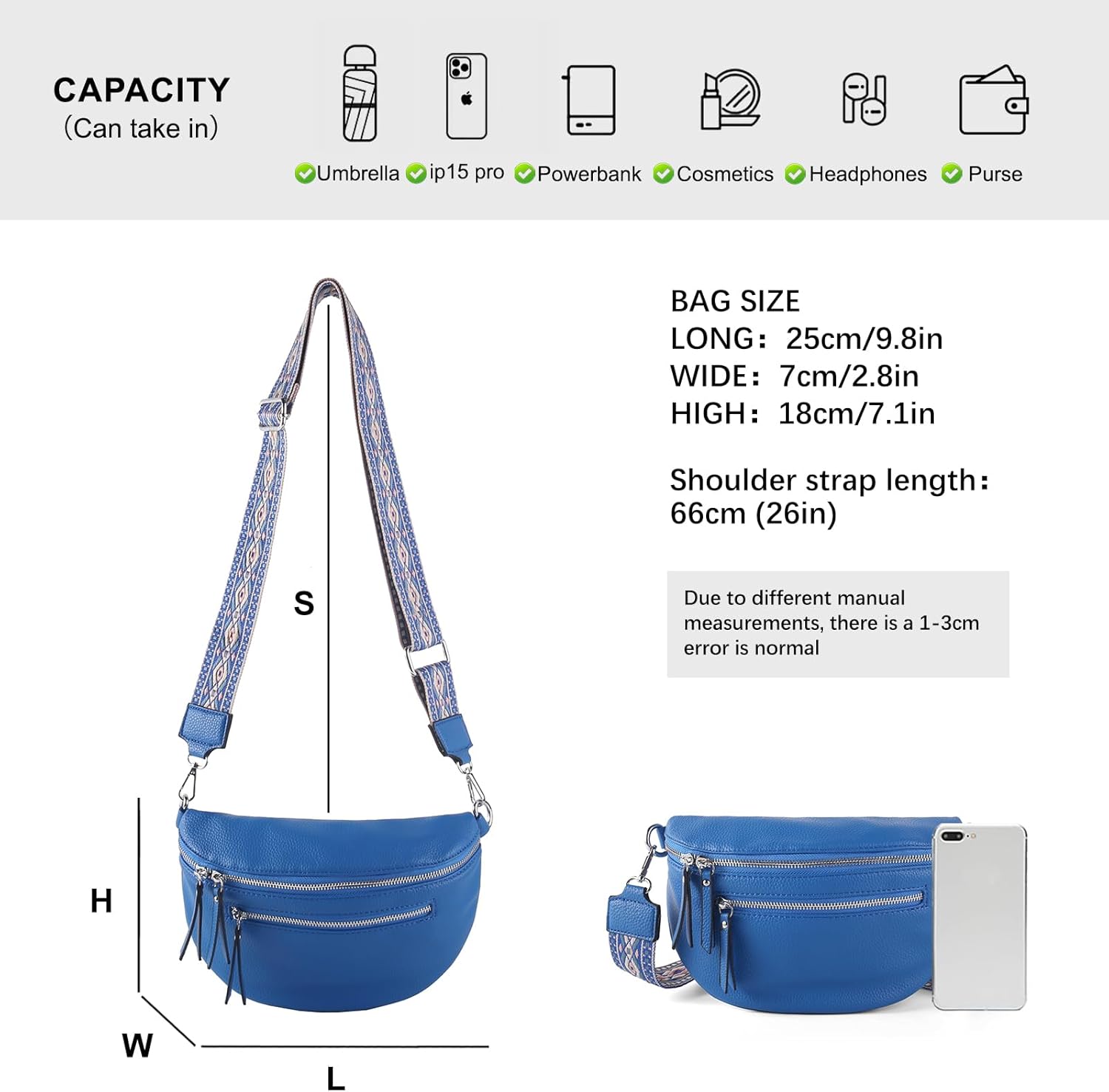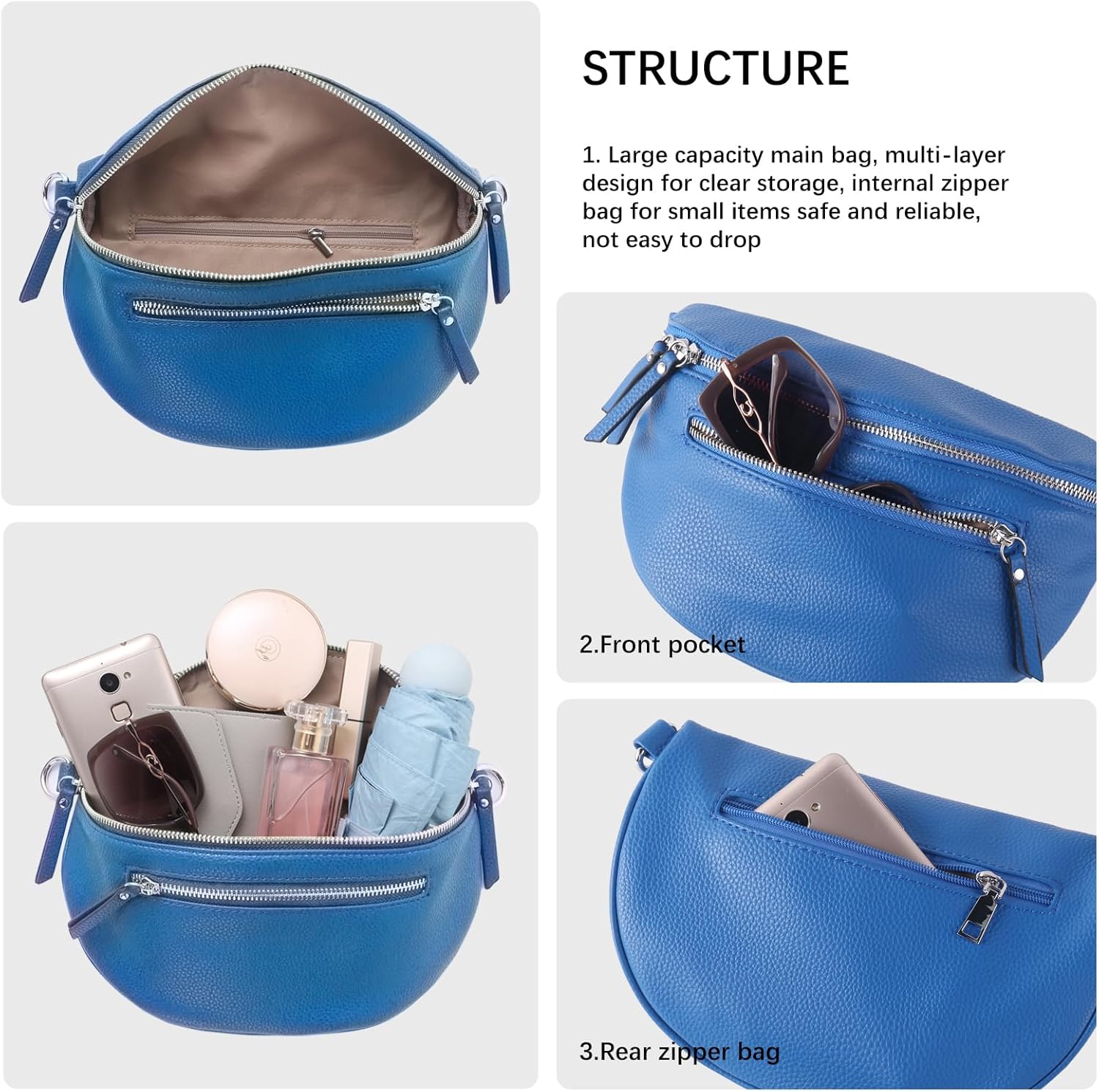 Elevate your style with this fashion leather crossbody bag. The small sling bag's compact size and adjustable strap make it a versatile choice for everyday use or travel. Crafted from premium leather, this fanny pack crossbody bag offers durability and a chic look. With multiple pockets and compartments, it keeps your essentials organized and within reach. Whether you're running errands or exploring a new city, this crossbody purse is a practical and fashionable accessory for women and teen girls alike. Effortlessly transition from day to night with this stylish and functional bag.