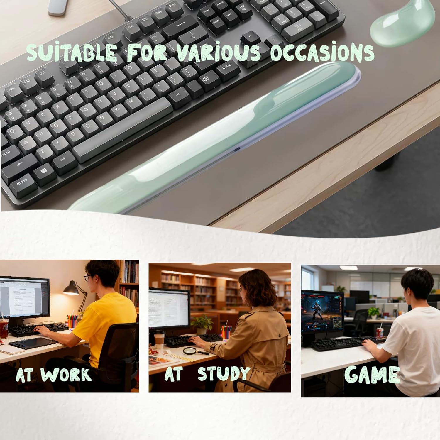 Upgrade your computer comfort with our Gel Keyboard and Mouse Wrist Rest Set. Engineered for those who spend hours at their desk, this set is your essential defense against wrist strain and discomfort. Crafted from high-quality, soft silicone gel, our wrist rests offer superior cushioning that molds to your wrists, providing exceptional support where you need it most. The ergonomic wave design is not just for looks; it actively promotes a healthier, more neutral wrist position to help reduce fatigue and the risk of pain from prolonged typing or gaming. Stay focused and in control with the integrated non-slip base that prevents any unwanted movement, guaranteeing the rest stays exactly where you place it. The gel's cooling property ensures your hands stay comfortable and sweat-free, even during marathon sessions. Designed for a universal fit, the keyboard rest seamlessly accommodates most compact keyboards, including 60%, 65%, and 75% layouts. Paired with the matching mouse rest, it creates a complete ergonomic solution for your entire workspace. Easy to maintain and built for daily use, this set is the perfect blend of comfort, functionality, and style for your office or gaming station.
