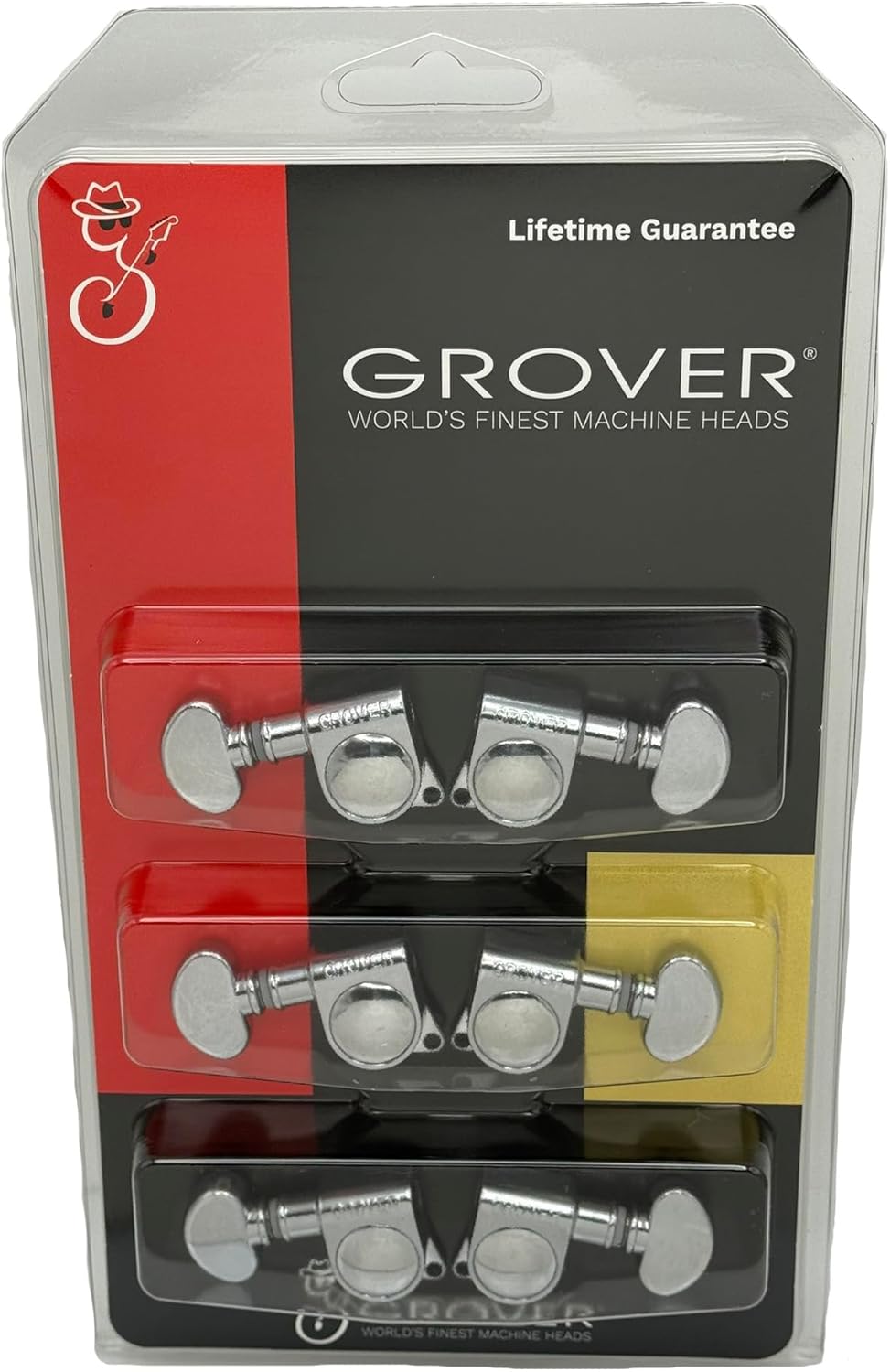 The 406 Series gives you the same innovative engineering and classic design as the Standard Locking Rotomatics, but with smaller buttons for 6-in-line guitars, or for those who prefer a little more space for their fingers. Simply insert the string through the string hole, pull to tension by hand and begin tuning. As you start to tune, only the locking cam in the string post turns. Once the string is locked, the string post begins to turn allowing you to bring the string to pitch. In less then one revolution of the string post, you will be in tune, and stay in tune. Gear ratio is 18:1.