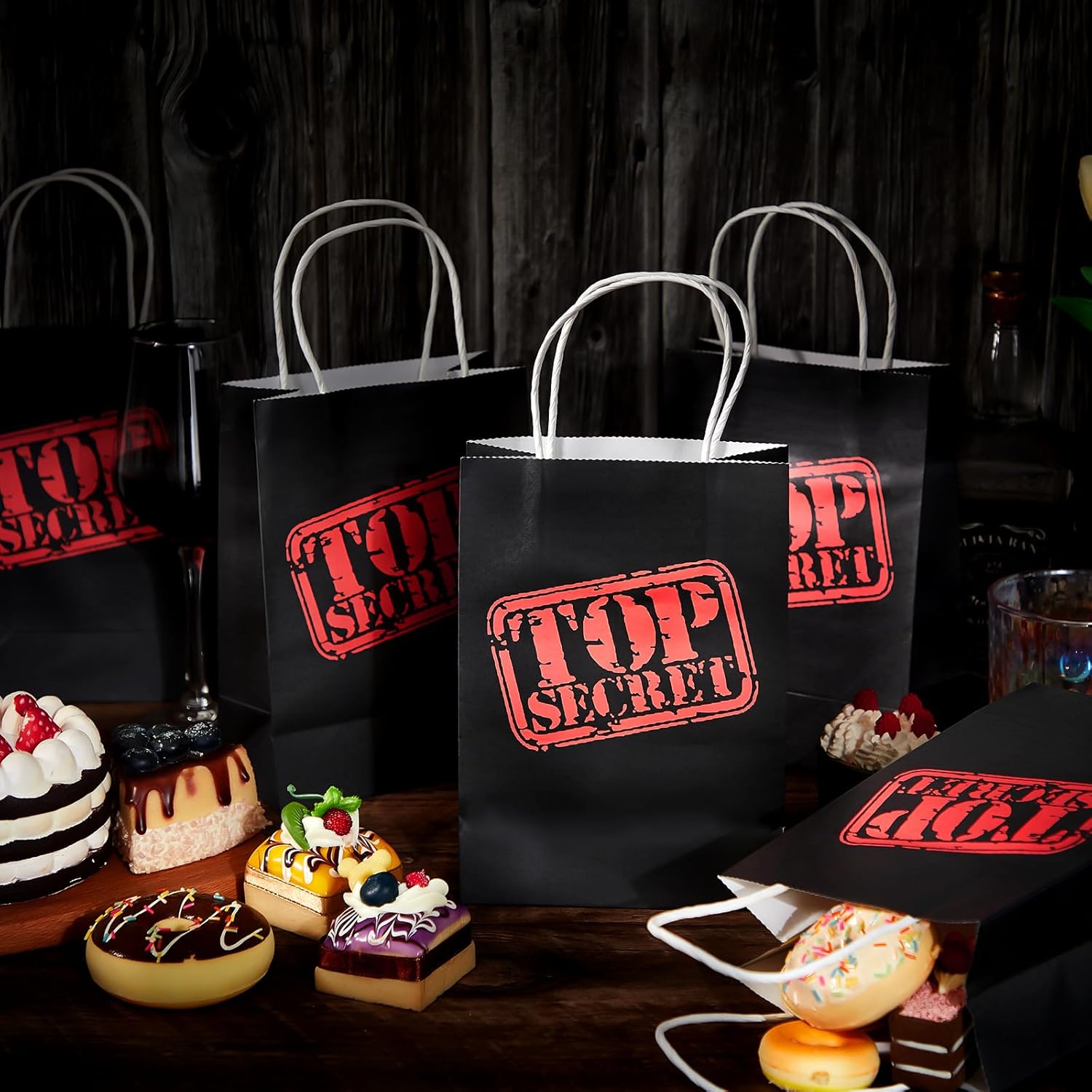 | Included Components | 48 x Top secret paper gift bags with handles |