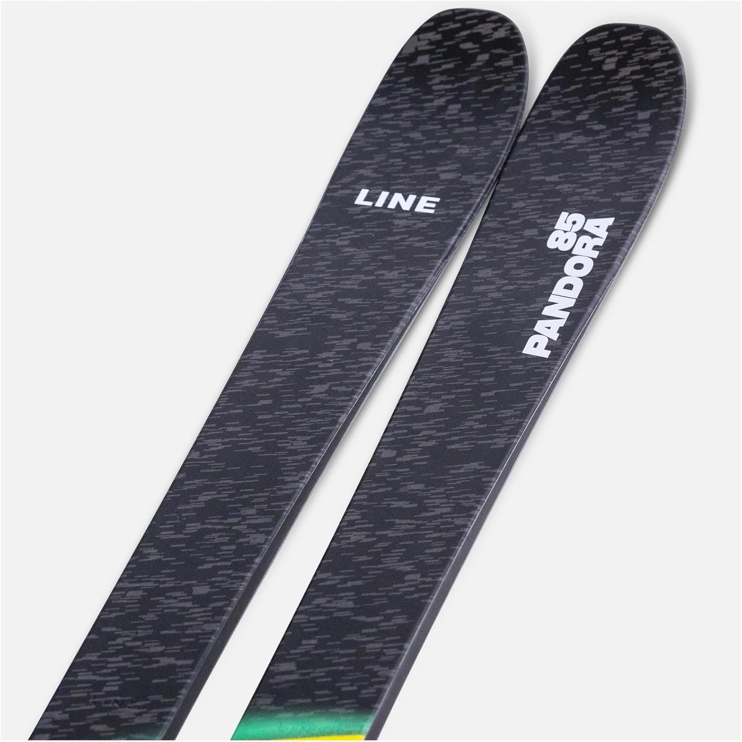 LINE PANDORA 85 SKIS: The LINE Pandora 85 Skis are the ideal "intuitive hardpack specialist" for beginner and intermediate skiers. Designed to build confidence and refine technique, this ski delivers effortless control and stable performance on groomed trails. Its key technology is the 5CUT Multi-Radius Sidecut, which makes initiating turns intuitive and allows for a versatile range of turn shapes. A Directional Flex pattern - softer in the tip for easy initiation and stiffer in the tail for power - complements this, providing both forgiveness and stability. The Early Rise tip and tail prevent catching edges, enhancing the ski's forgiving nature. Built with a durable Capwall Construction and a fast sintered base, the Pandora 85 offers a lightweight yet damp feel that absorbs vibrations. Available with integrated bindings for easy setup, it's the perfect frontside companion to help developing skiers progress with confidence and discover the joy of carving. FEATURES: - Base: Sintered 1.3mm; - Edge Dimensions: 2.1 x 2mm; - Flex Pattern: Directional; - Profile (tip-waist-tail): 6-5-4mm; - Stance Back from Center: 56.5mm; - Turn Shape: Short; - Waist Width: 0 - 89mm; - Wood Core Material: Aspen Veener.