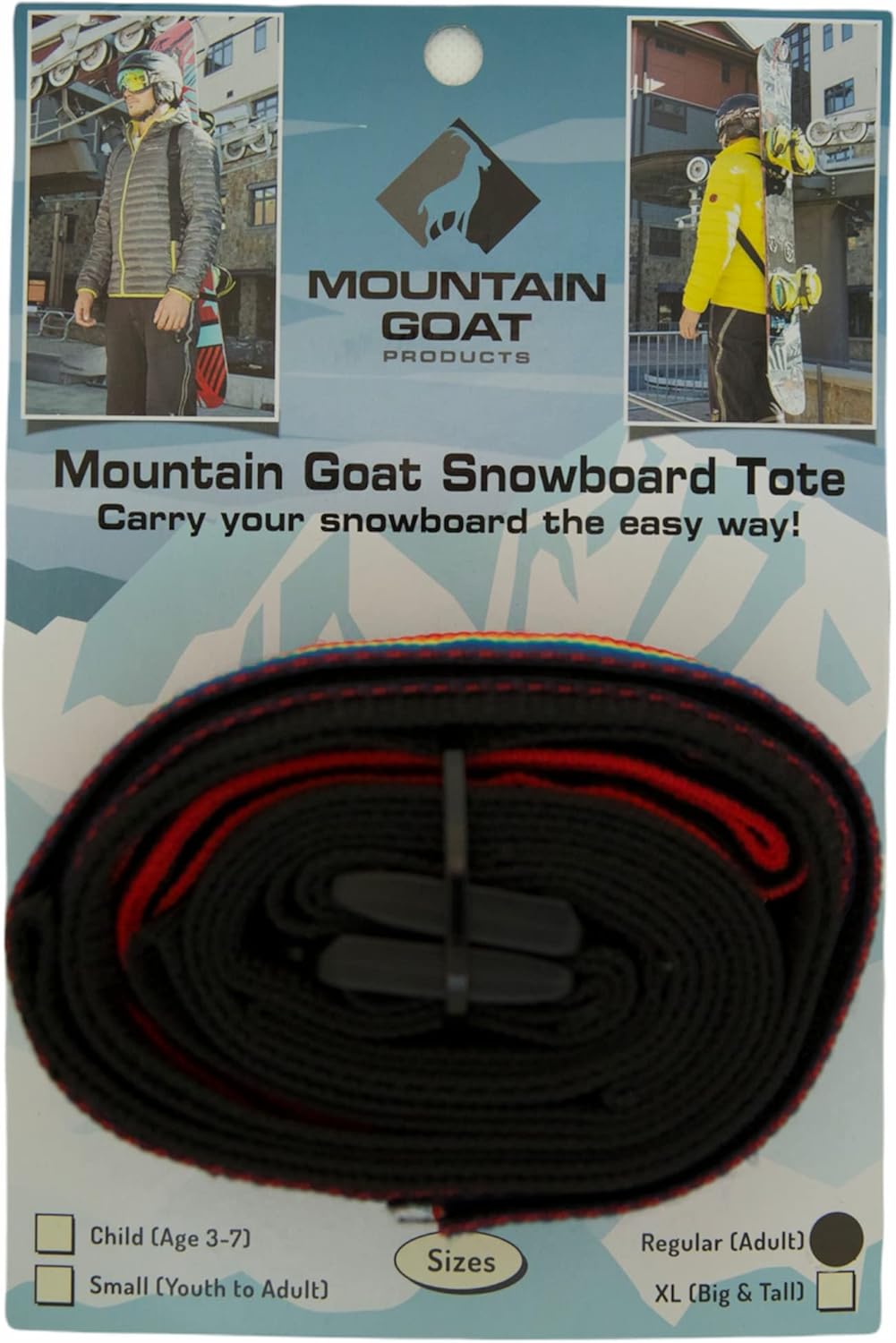 Lifetime Warranty against manufacture defects! The Mountain Goat Ski Tote is a Ski or Snowboard Tote system that is worn on your back like a backpack!When not in use rolls up & fits in your pocket!The tote is very durable, lightweight & compact, small enough to fit in your hand but holds any pair of skis (or a snowboard) securely on your back when in use!