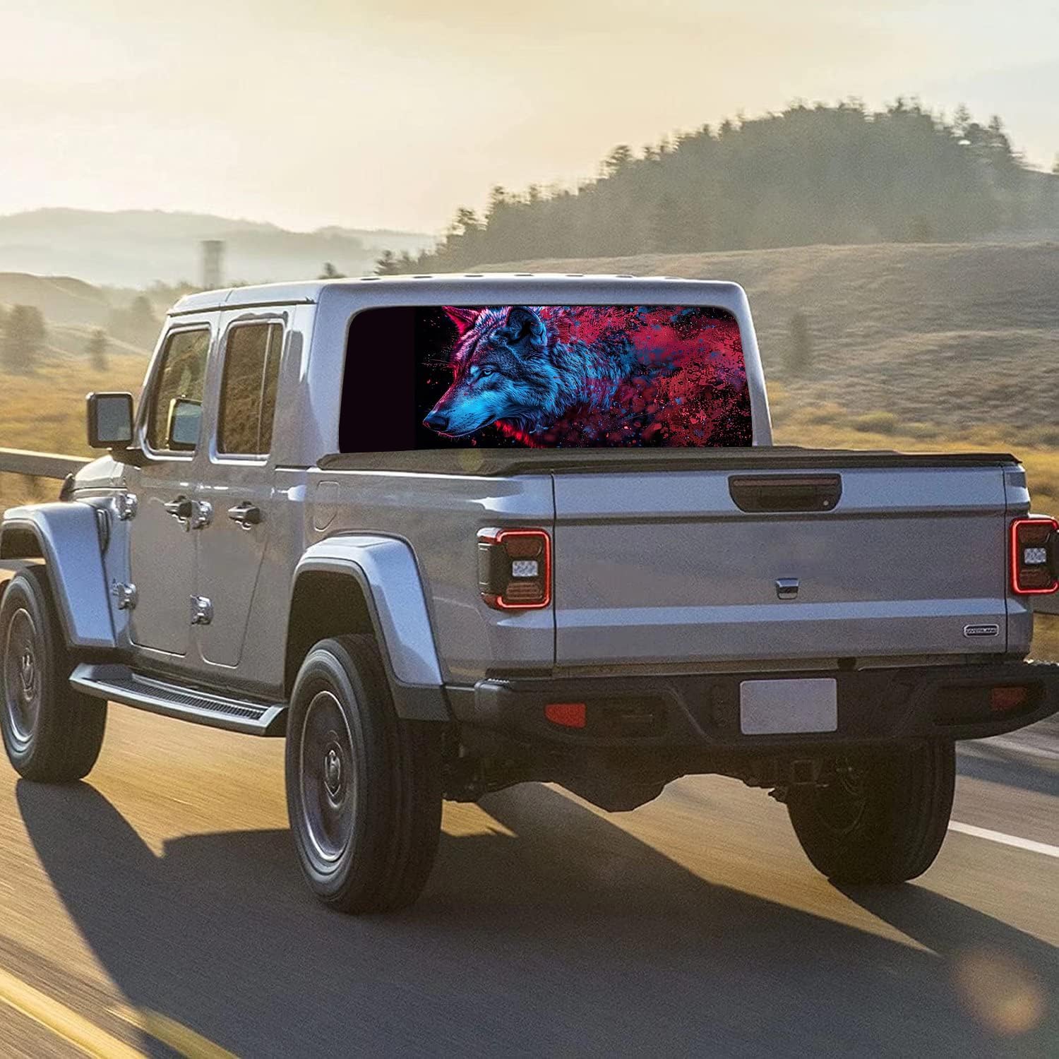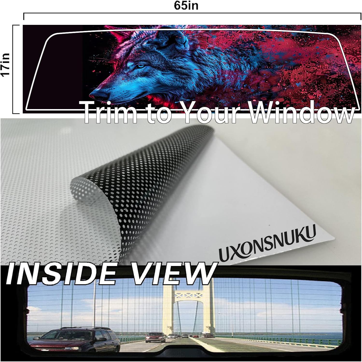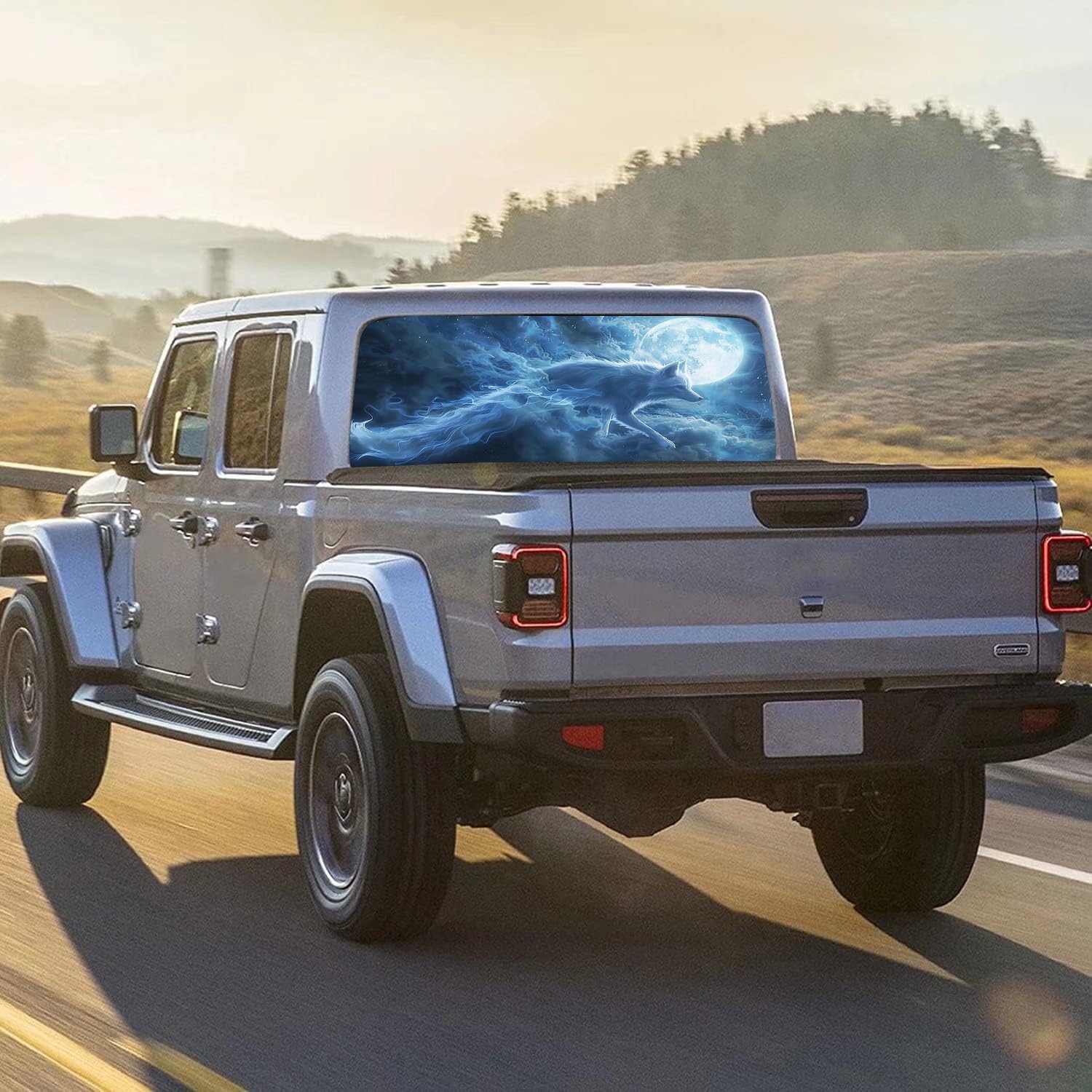 Our truck rear window decal universal size is 17" x 65", measure your truck window size before ordering, it can be easily cut to the exact shape you need. It fits most pickup trucks, SUVs, car rear windows and makes your car look Beautiful. If you need a different size for your vehicle, we will give you the size you need at no extra charge. Each of our decals is designed to provide full coverage for the rear window of a pickup truck.Installation Steps:(1)Clean surface of any dust or debris.(2)Place decal down on a flat surface face down and peel off paper backing. Avoid letting the decal stick to its self.(3)Pull slightly tight and Lightly stick the 4 corners of the decal to the desired location (this may be easier with two people)(4)With a credit card or Smoothing squeegee, squeegy the decal down working from the middle out. (Try to avoid bubbles and/or creases)(5)Trim the excess material off along the edge of the window with a razorWe control the quality of our window decals products during the manufacturing process, and then we will pack them carefully to make sure they reach you in the best condition. If you are not satisfied with our products, please feel free to contact us, we will contact you in the shortest time. Your satisfaction is our only pursuit.
