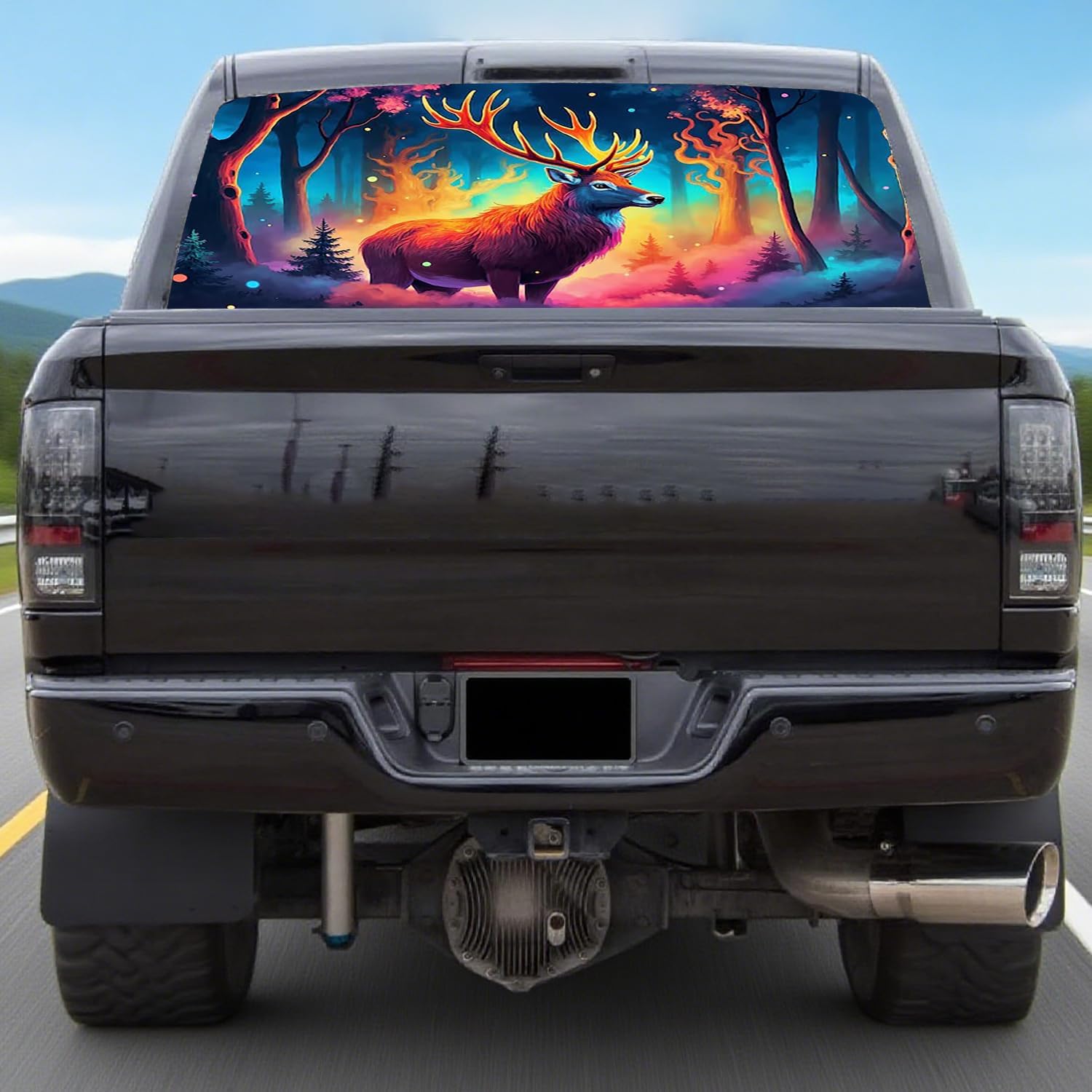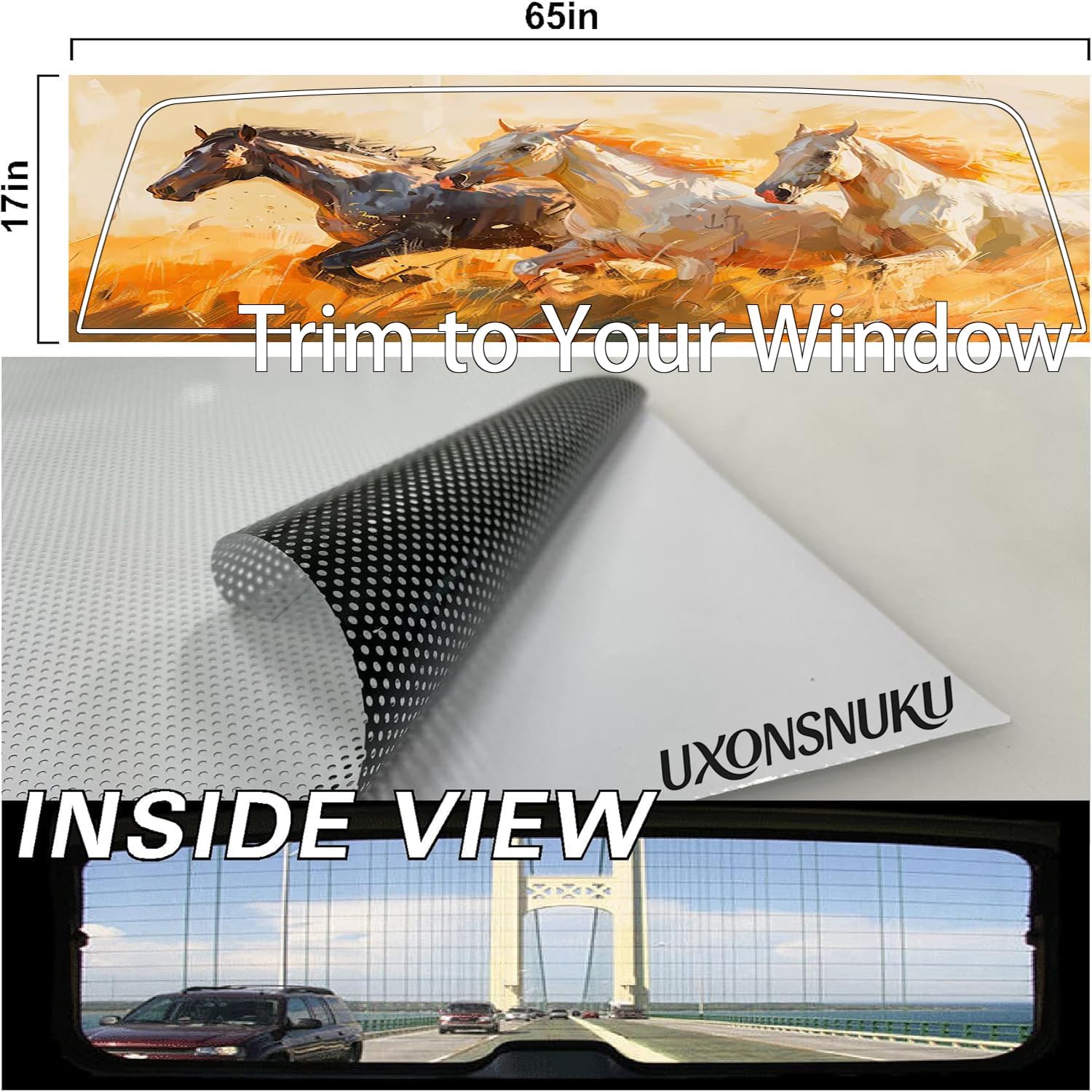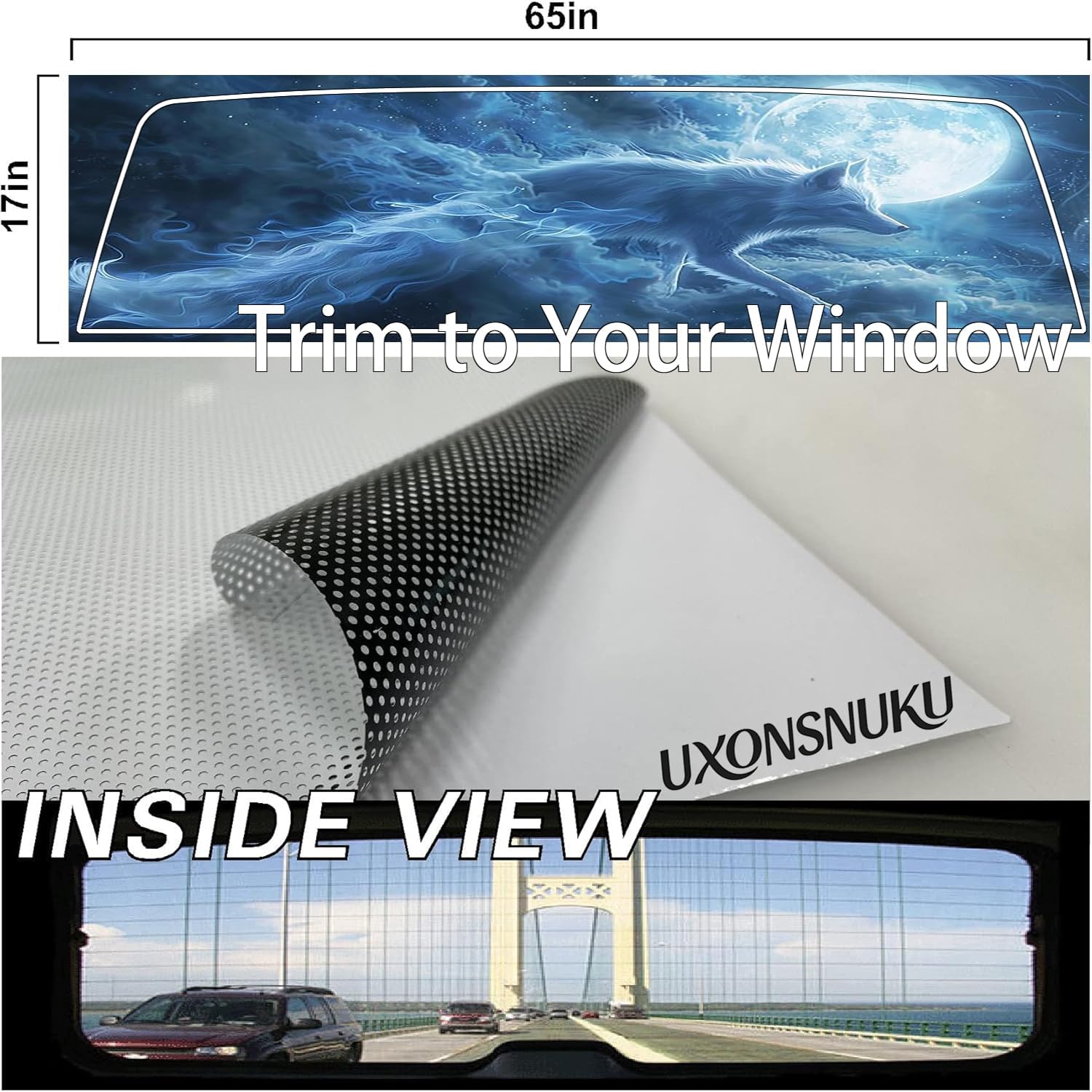 Our truck rear window decal universal size is 17" x 65", measure your truck window size before ordering, it can be easily cut to the exact shape you need. It fits most pickup trucks, SUVs, car rear windows and makes your car look Beautiful. If you need a different size for your vehicle, we will give you the size you need at no extra charge. Each of our decals is designed to provide full coverage for the rear window of a pickup truck.Installation Steps:(1)Clean surface of any dust or debris.(2)Place decal down on a flat surface face down and peel off paper backing. Avoid letting the decal stick to its self.(3)Pull slightly tight and Lightly stick the 4 corners of the decal to the desired location (this may be easier with two people)(4)With a credit card or Smoothing squeegee, squeegy the decal down working from the middle out. (Try to avoid bubbles and/or creases)(5)Trim the excess material off along the edge of the window with a razorWe control the quality of our window decals products during the manufacturing process, and then we will pack them carefully to make sure they reach you in the best condition. If you are not satisfied with our products, please feel free to contact us, we will contact you in the shortest time. Your satisfaction is our only pursuit.
